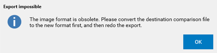 Exporting to a comparison still using the older image format will be blocked, the user should first convert the image format.