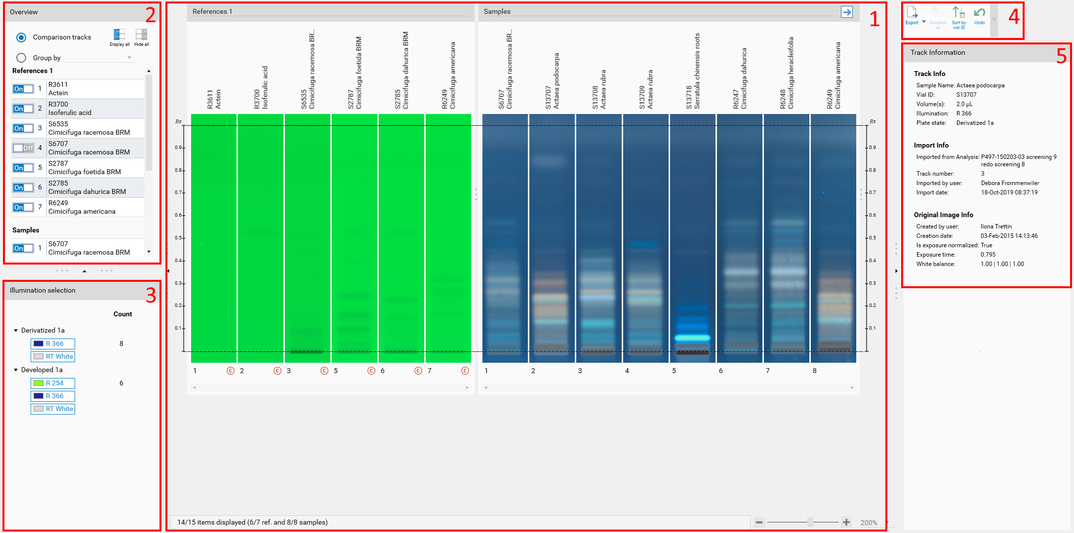 This view is the same as the one in the comparison profile tab, but for image tracks (see Overview).