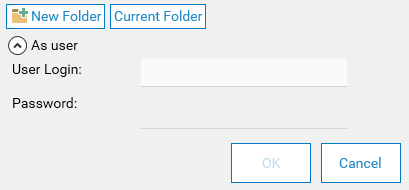 ): opens the currently selected item with specific user credentials. This option is activated if User Management and the Open as management option are activated. See the note below for more information.Close current item (