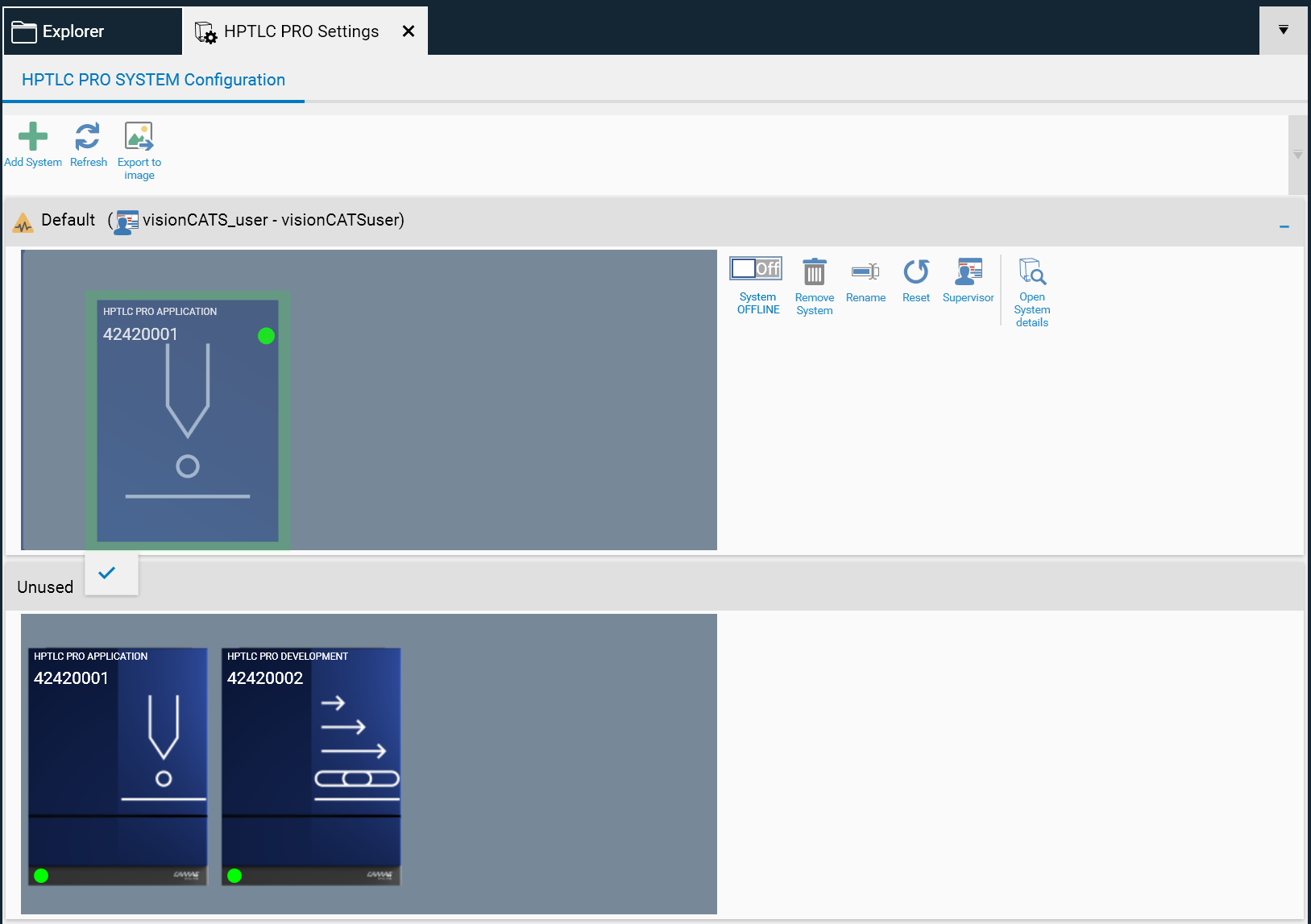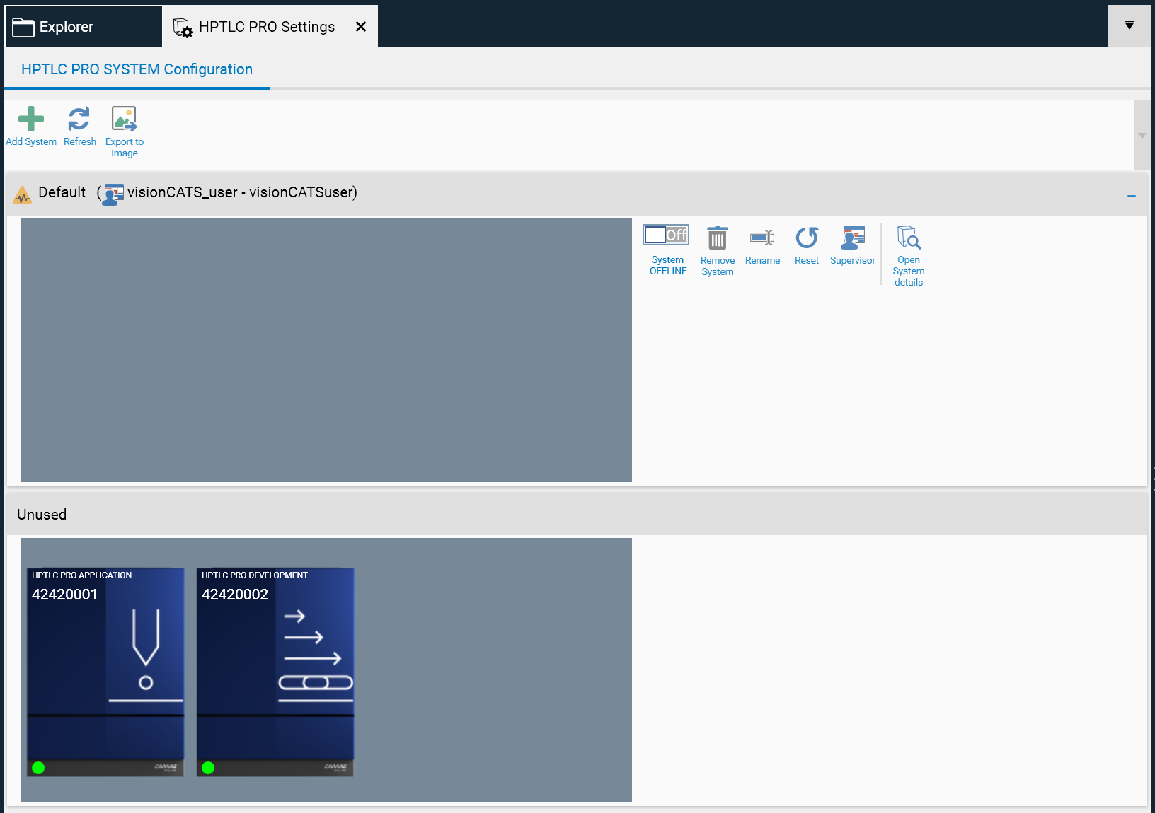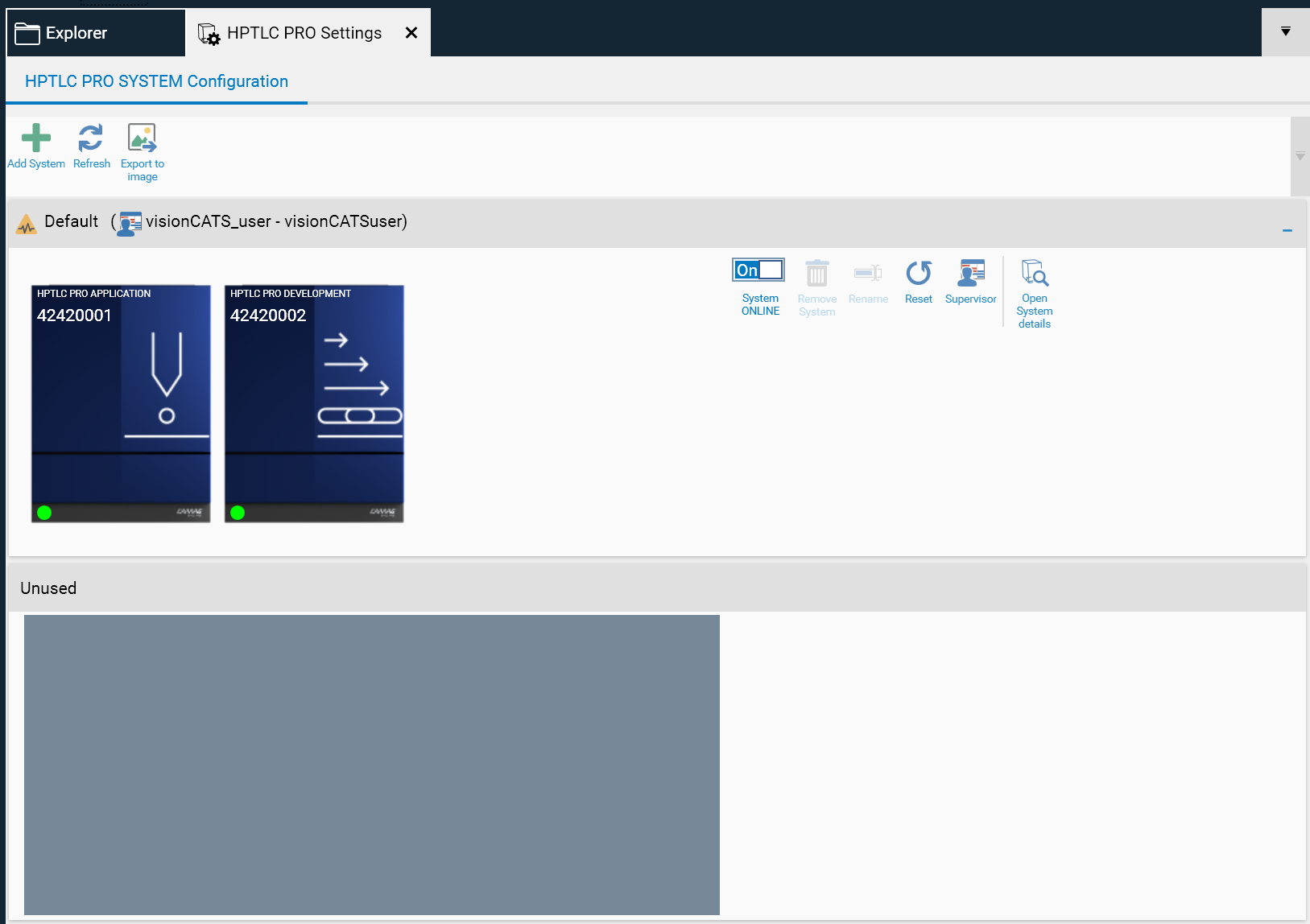 All the newly connected HPTLC PRO Modules should be in the Unused HPTLC PRO SYSTEM row