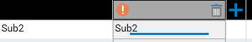 In this view, the column header of the grid contains the global actions related to the substance definition: an add button, a delete button, and an eventual warning button if the definition is invalid (here for example the substance is already defined):