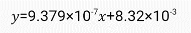 And the calibration curve (\(x\) in picogram, format \(y=mx+b\)):