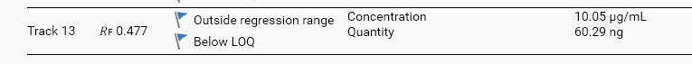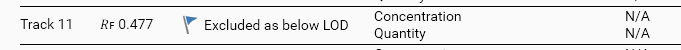 And in the Results tab, the track appears with a specific flag and the quantitative result is not computed: