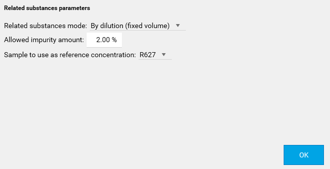 The related substance functionality can be used in 3 modes, accessible by clicking on the Related substances parameters button :