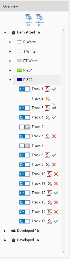 Showing which tracks are set as Samples and which one is the Reference (clicking on it, changes the status)