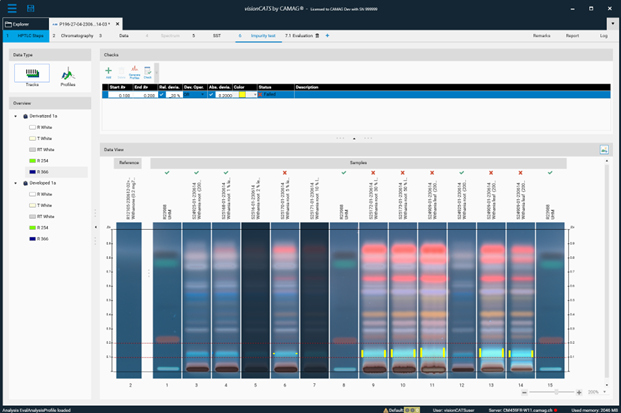 Here you can select the illumination or wavelength of a specific HPTLC step you want to view. Clean plate data acquisition steps are not shown. For TLC Visualizer steps, the profiles must be generated by using the Generate Profiles function.