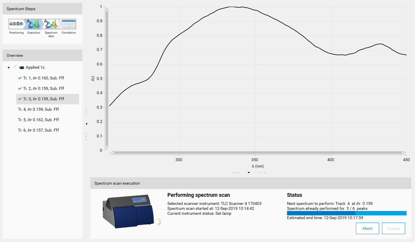 During the execution, follow the progression and preview the spectrum data.